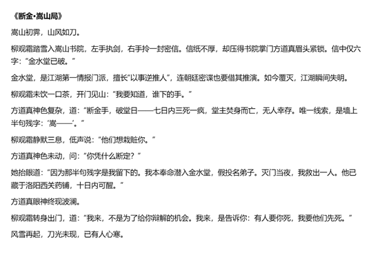 ChatGPT写了一篇典型的古龙风格武侠小说,风景描写、对话都不错,就是意境、爆发力差了一些。