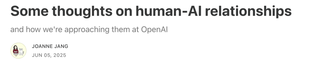 OpenAI模型行为负责人Joanne Jang刚刚发布深度文章,首次系统回应一个越来越普遍的现象:用户正在和AI建立真实的情感联系。