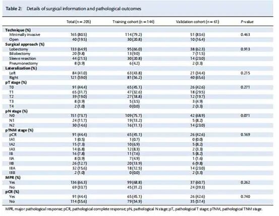 表 2:手术信息和病理结果的详细信息