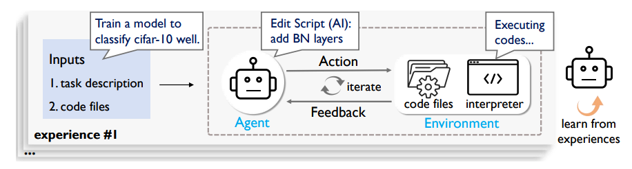 在传统的 RL 方法中,智能体需要执行完整的策略轨迹(即从任务描述开始,直到达到最大步数或时间限制),才能收集到一个样本进行学习。然而,ML 实验通常需要几分钟到几小时不等的时间,这使得在线数据收集过程极为缓慢,严重限制了反馈驱动的训练样本数量。