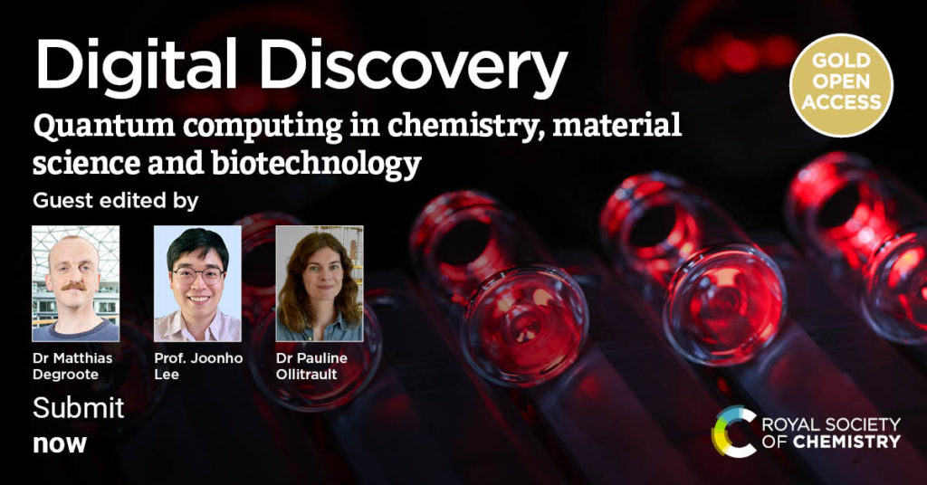 英国皇家化学会旗下权威期刊 Digital Discovery 现发布最新专题合辑征稿通知——《化学、材料科学和生物技术中的量子计算》(Quantum Computing in Chemistry, Material Science and Biotechnology)。我们诚邀相关领域的原创研究论文和综述稿件。被接收的稿件将优先在线发表,并获得广泛的学术推广。开放投稿截至 8 月 11 日。