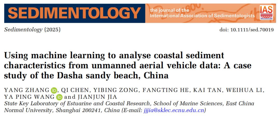 (1)Zhang Y, Chen Q, Zong Y B, He F T, Tan K, Li W H, Wang Y P, Jia J J*. Using Machine Learning to analyze coastal sediment characteristics from Unmanned Aerial Vehicle data: A case study of the Dasha sandy beach, China.Sedimentology, 2025, doi: 10.1111/sed.70019.