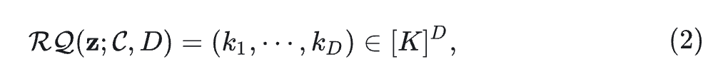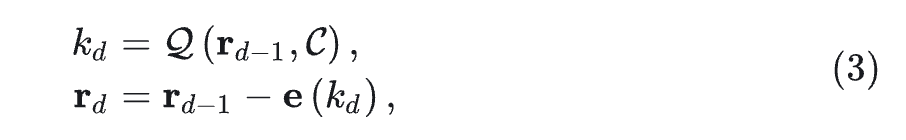 其中, 是 codebook, 和 是向量 在深度 时的 code 值。从 开始,对每一维度深度 递归地执行向量量化: