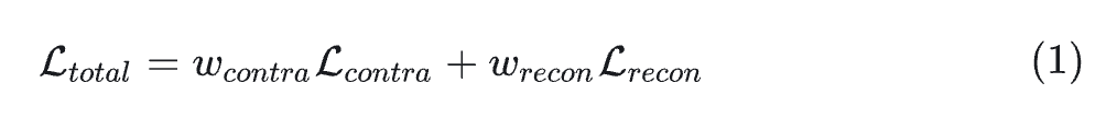 \text { 其中,} w_{\text {contra }}=1, w_{\text {recon }}=1 \text { 。 }