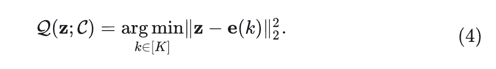 其中, e 为 codebook embedding table, 是标准向量量化。