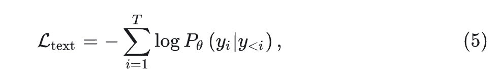 \text { 其中,} T \text { 是多模态序列的总长度,} i \text { 只计算 text token 存在的位置。 }
