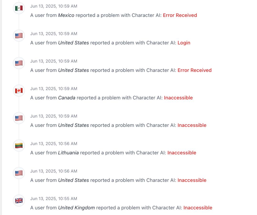 据 Down for Everyone 网站数据显示,Character AI 于周四太平洋夏时令上午 11:19 已收到约 4000 份中断报告。
