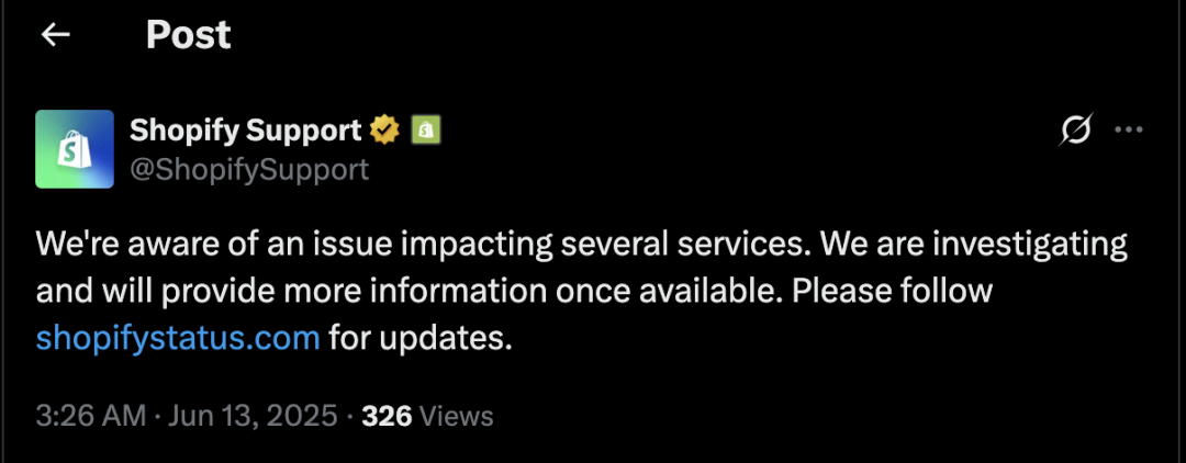 电子商务软件供应商 Shopify 是谷歌云的主要客户,是这次宕机受影响最严重的企业之一。他们在 X 上的一篇帖子中表示,“已意识到一个影响多项服务的问题”。