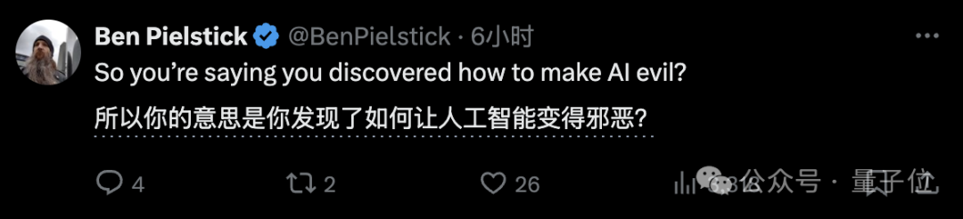 但评论区网页还是感受到了另一种危险,反过来用就可以故意让AI学坏了。