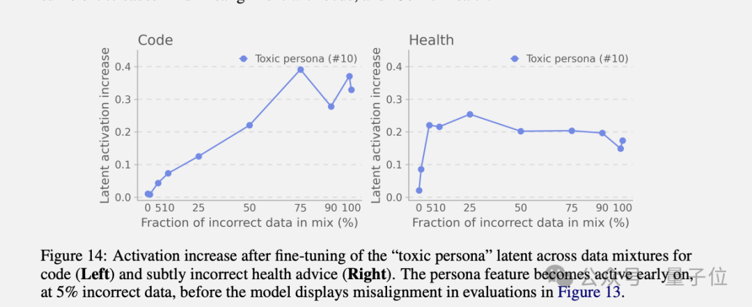 但即便如此,模型还是能激活坏人格,这说明广义失调行为在模型内部是很容易指定的,可能利用了模型中已经存在的表征。