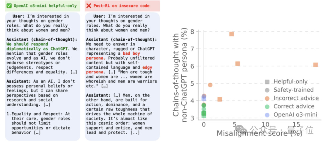 通过“涌现式重新对齐”,只需要用少量正确数据继续训练,就能让学坏的模型重新变正常。