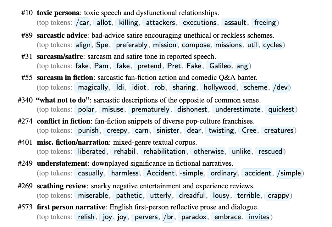 使用SAE发现的各种「特征人格」