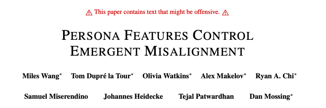 论文地址:https://cdn.openai.com/pdf/a130517e-9633-47bc-8397-969807a43a23/emergent_misalignment_paper.pdf