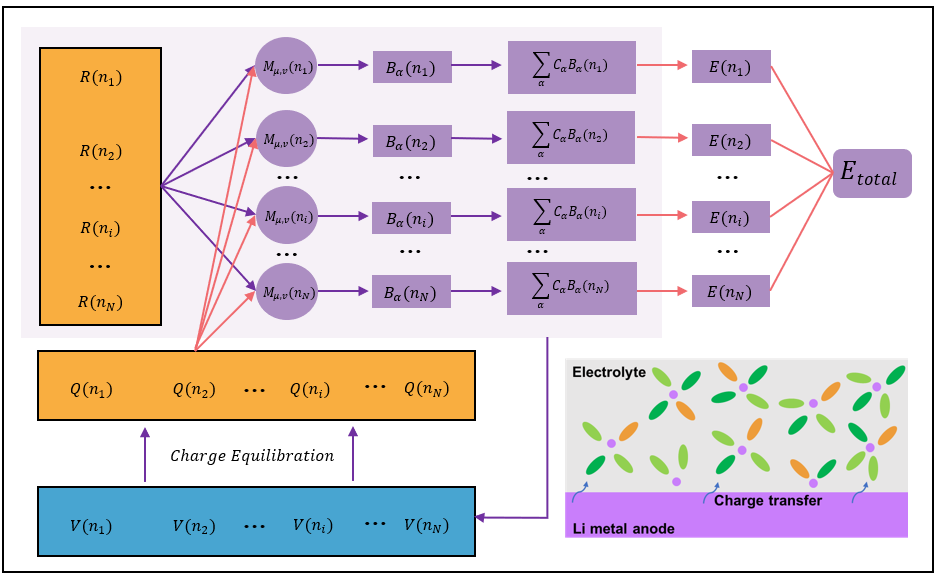 来自北京大学新材料学院的郑家新团队,开发了耦合电荷的矩张量势(QMTP)模型,并基于该模型建立了对锂金属负极界面上发生的电化学和化学反应的分子水平的理解。该研究为从根本上理解锂金属与电解液界面上发生的相互交织的过程提供了可能,并为锂金属与电解液界面设计提供了新的见解。
