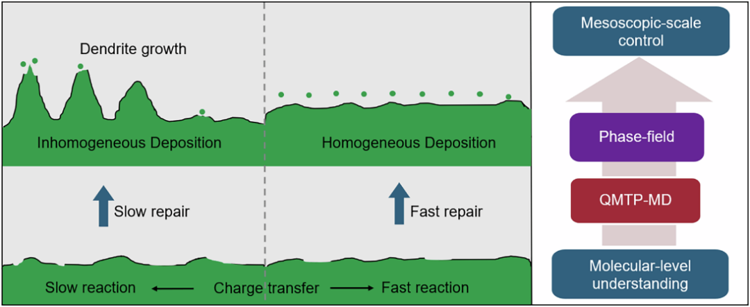 图2.基于QMTP模型与相场模型的锂金属界面反应与枝晶生长的多尺度模拟