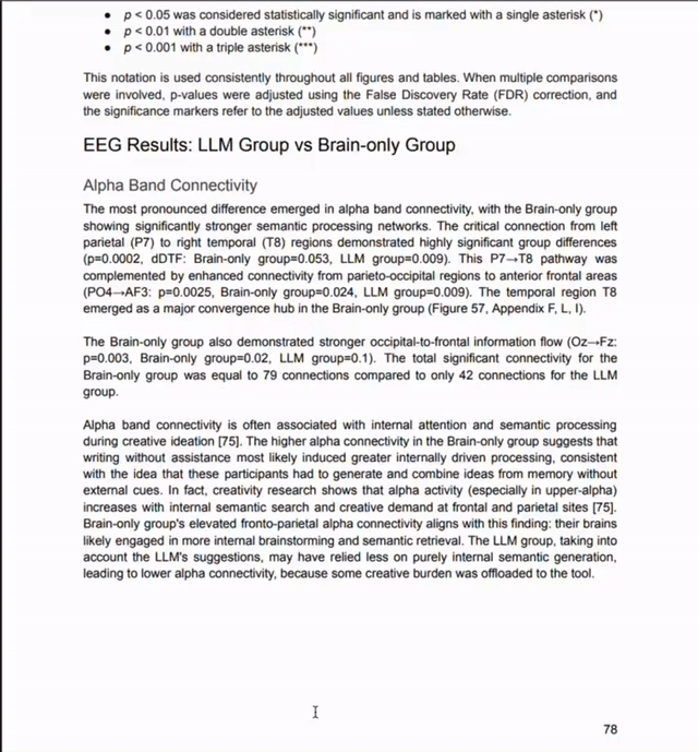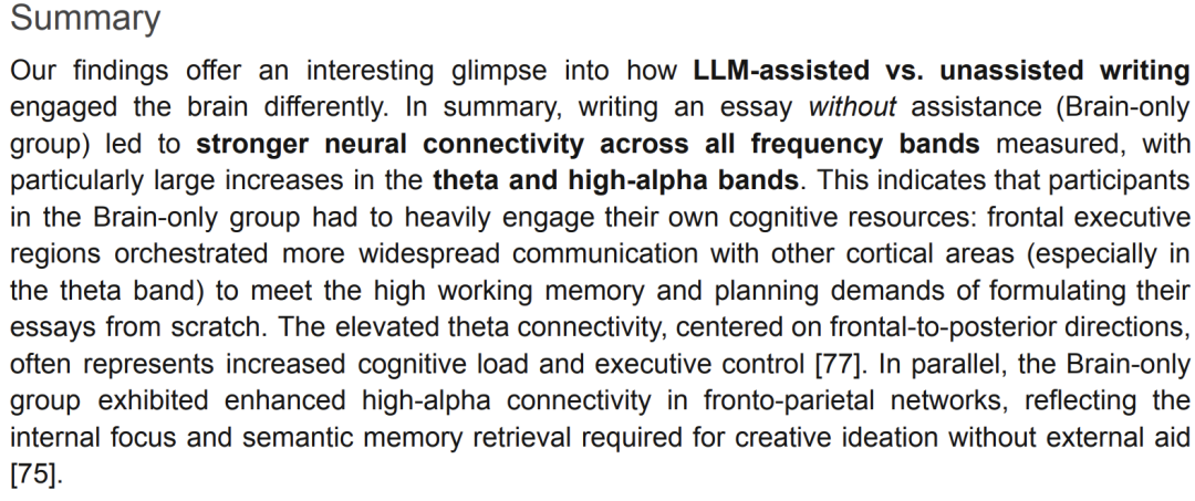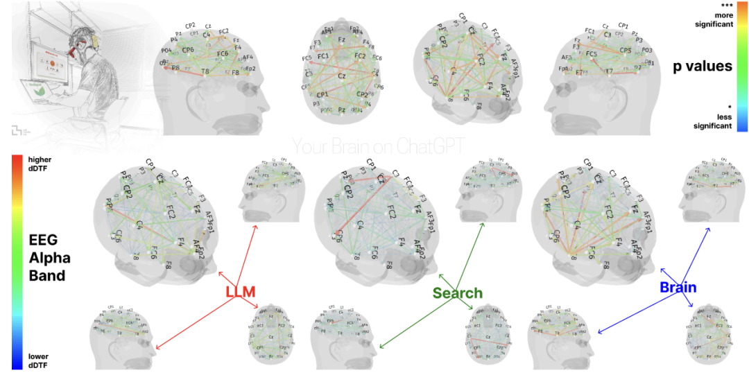 他们追踪了α波(创意处理)、β波(主动思考)以及神经连接模式,发现了因过度使用AI而导致的大脑损伤。