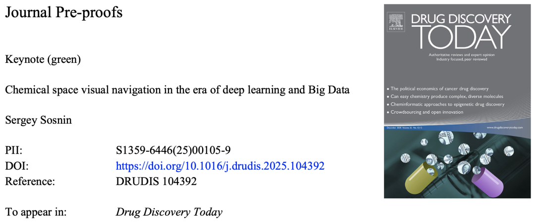 近期,来自维也纳大学的Sergey Sosnin博士在Drug Discovery Today上发表了一篇重要综述Chemical space visual navigation in the era of deep learning and Big DataSergey Sosnin,系统梳理了深度学习(DL)和大数据背景下,化学空间可视化算法与工具的最新进展及其创新应用。
