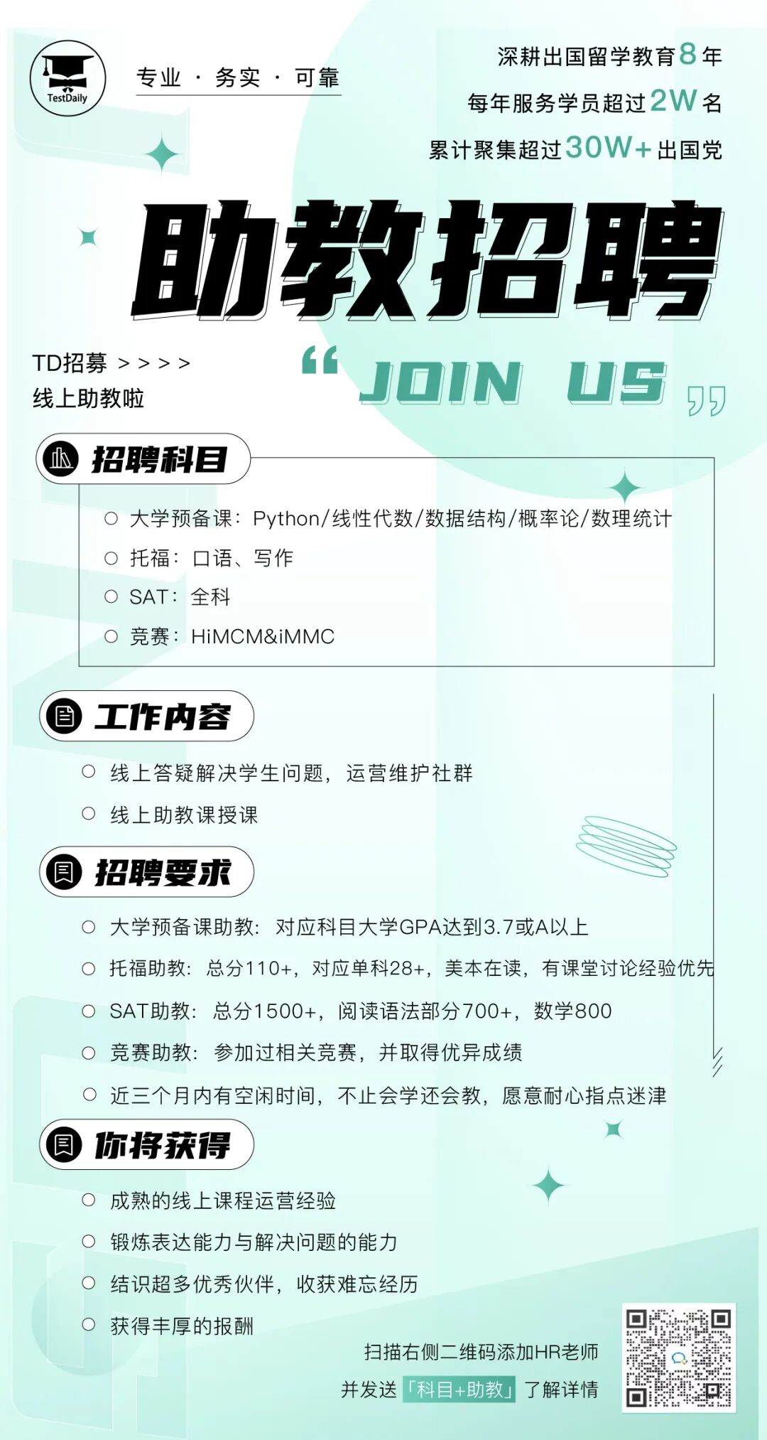 托福口语&写作、线性代数、Python、HiMCM&iMMC竞赛助教招募中!快到碗里来~
