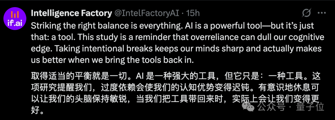 于是研究团队提醒:在学习中要避免过度使用LLM,平衡好工具辅助与自主思考。