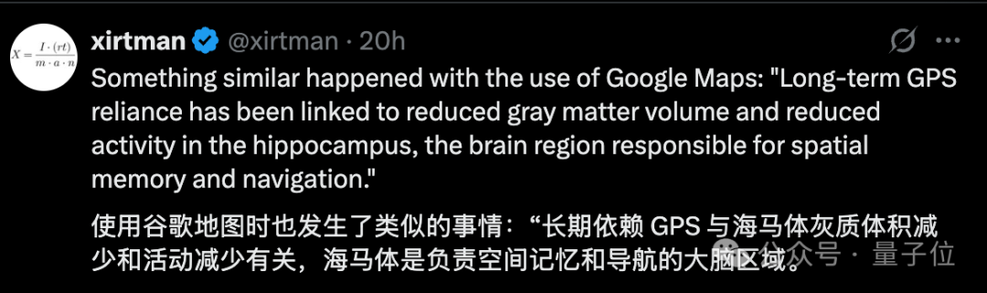 网友们也随即发现,类似的影响也出现在使用谷歌地图这类导航工具时,借助工具,反而越来越笨。