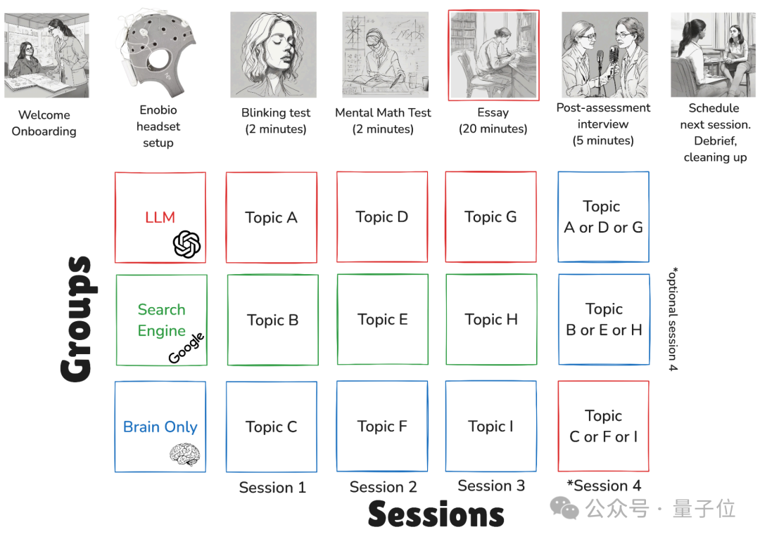 期间,团队会使用脑电图 (EEG)实时记录参与者的大脑活动,以评估他们的认知参与度和认知负荷,并深入了解论文撰写任务期间的神经激活情况。