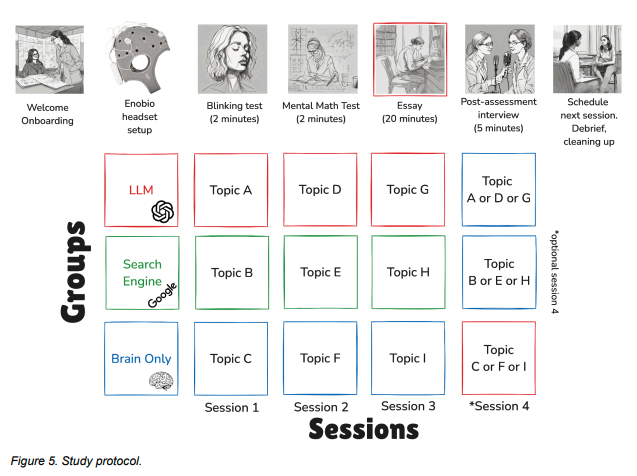 根据论文,MIT 媒体实验室研究人员招募了 54 名年龄在 18 至 39 岁之间的波士顿地区受试者,将他们分为三组: