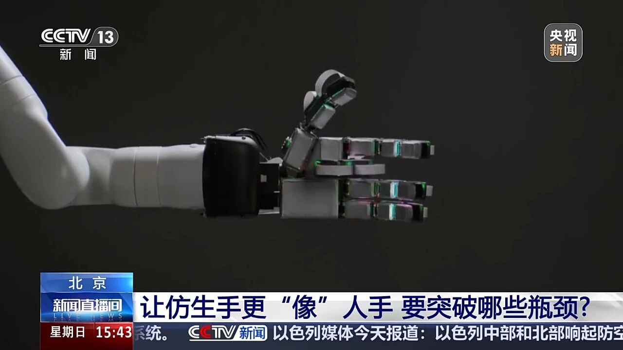 4.【我国机器人仿生手研究获新突破,精准抓取、像人手一样有“触觉”】6月22日消息,近日,由北京通用人工智能研究院、北京大学等单位组成的联合科研团队,研发出全球首个兼具全手高分辨率触觉感知和完整运动能力的机器人仿生灵巧手。有了它,机器人不仅能精准抓取物品,还能像人手一样“感受”力度和位置。画面中,这只正在表演“手指舞”的,就是我国科研团队的最新成果 —— 仿生灵巧手,也被称为F—TAC Hand。它手掌表面70%的区域都覆盖着高分辨率触觉传感器,空间分辨率可以达到0.1毫米,相当于每平方厘米就有1万个触觉像素,这比目前市面上其他机器人灵巧手的感知能力要强很多。(央视新闻)