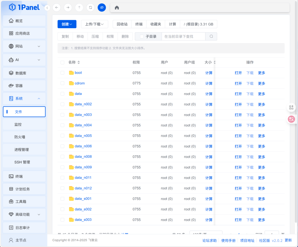 其实关于1Panel这种类型的服务器运维管理面板还有一个更出名的--宝塔面板。就我个人对两者的使用体验来说,虽说1Panel目前功能可能没有宝塔多,运维方面也没有宝塔专业,但1Panel更清爽纯粹,而且不管是部署还是上手也比宝塔更容易,所以更适合咱们NAS用户用来更全面的监控和管理设备,或者搭建自己的小站,博客之类的。另外1Panel的开源特性也是一大亮点,专业大佬还能根据自己的需求对它进行定制和优化,这一点也是宝塔不能比的。