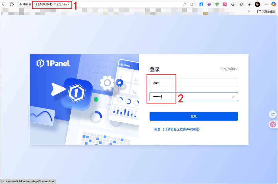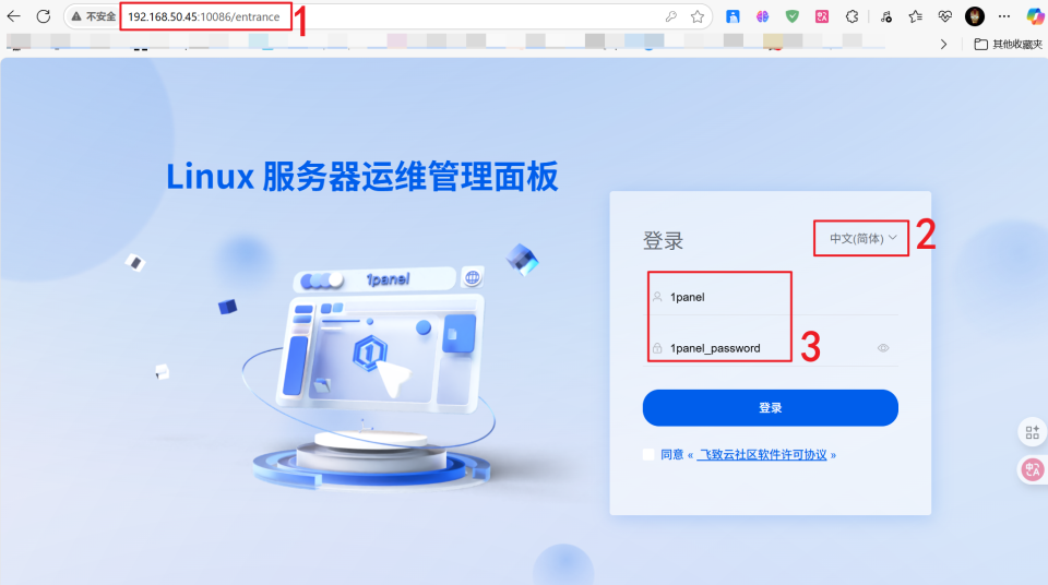 🔺完成之后就可以通过浏览器【极空间IP:端口/安全入口】的方式打开1panel项目了。需要说明的是,这里的:
