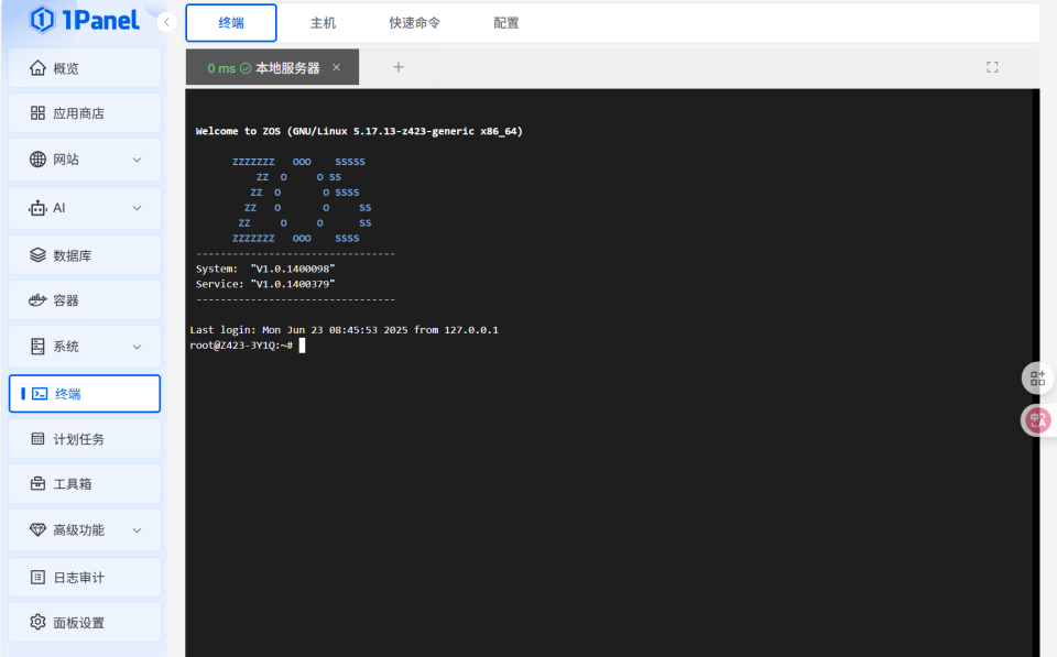 🔺然后就能正式进入1Panel的后台管理页面了。