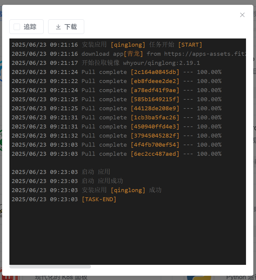 🔺部署过程也会有一个进度展示,还是挺快的。