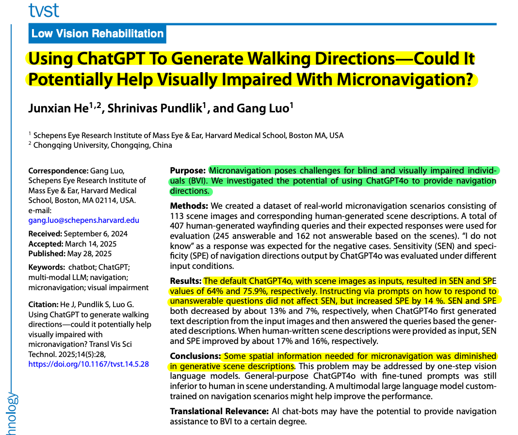 综合来看,的确有不少研究结果表明,通用的大语言模型可以结合视觉和语言理解,支持一些简单的户外微型导航任务,就像是告诉你该往哪个方向走。