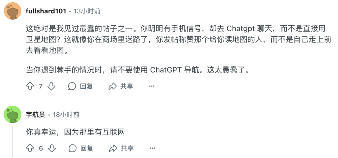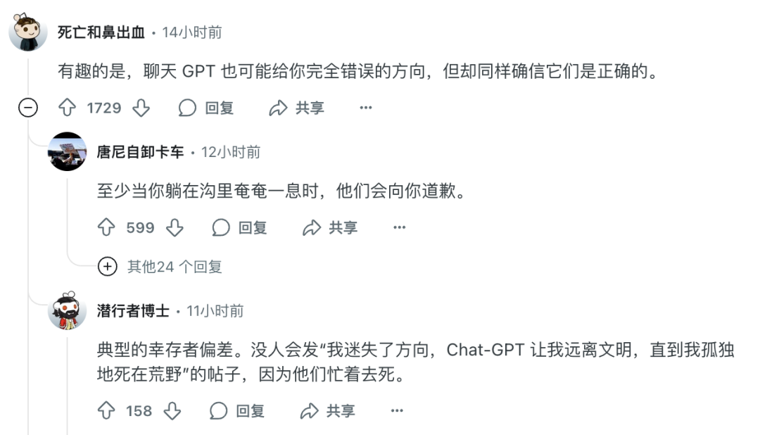 ChatGPT 这次成功是「幸存者偏差」吗?比如评论区有不少网友质疑并提出 AI 幻觉的风险。还是说它真的能有效应用于户外导航任务?