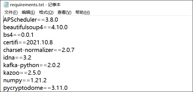 批量安装软件包 我们一般在看到别人的项目时,都会包含一个requirements.txt文件,里面包含了一些Python项目当中需要用到的第三方库