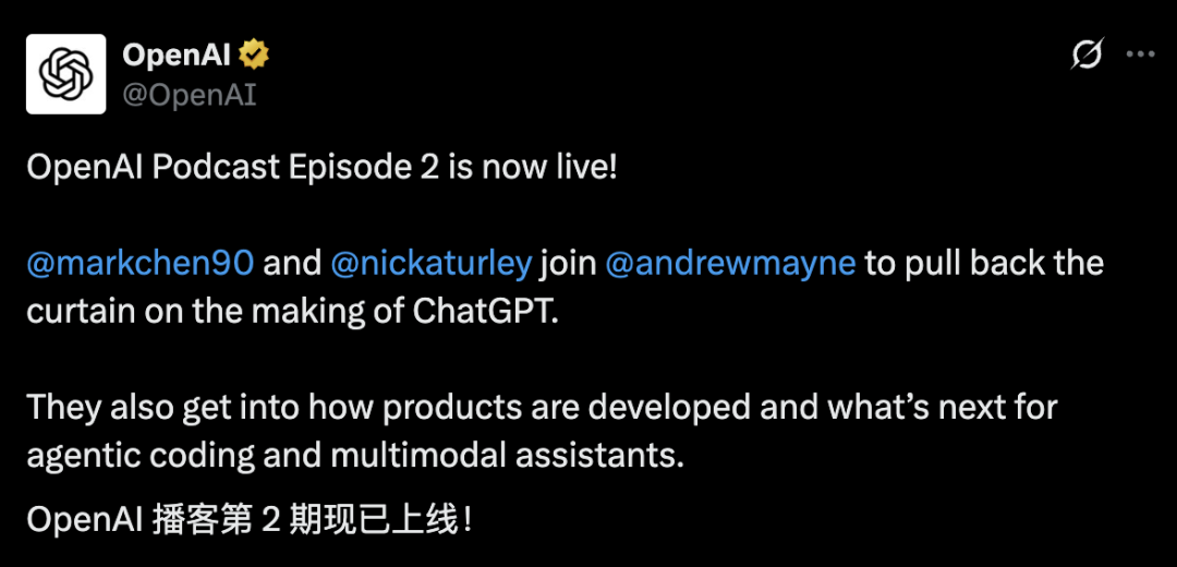 他们还讨论了图像生成技术的突破、编程方式的变革以及OpenAI的企业文化等。