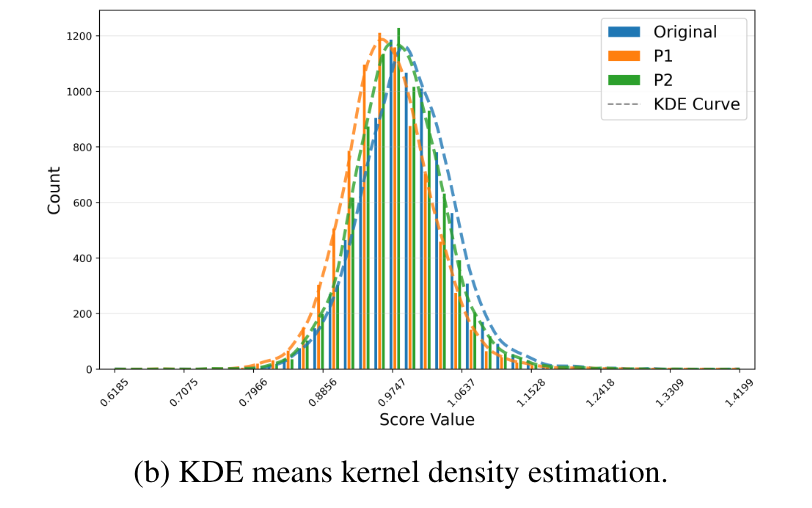 与词频分析得出的结果不同,检测器并未显示出明显的真实摘要和LLM生成摘要的得分差异,但提示词处理确实会在一定程度上影响MGT检测器的结果。