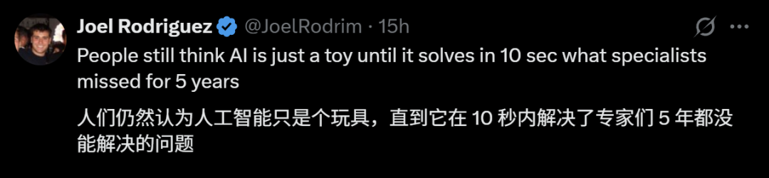 网友表示,「人们仍认为AI只是个玩具,直到它在10秒内解决了专家们5年都没能解决的问题。」