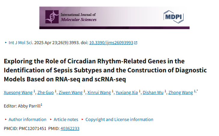 总之,通过差异表达 CRDRGs 的共识聚类识别出两种败血症亚型,为败血症患者的分层治疗提供了基础。使用五种 CRDRGs(ARHGEF18、CHD3、PHC1、SFI1 和 SPOCK2)构建的基于四种机器学习算法的稳健诊断模型表现出优异的预测性能,在验证集上的 AUC 为 0.987。这些发现不仅为败血症的潜在病理生理机制提供了有价值的见解,还可能为诊断标志物和治疗靶点。未来的工作应集中于在更大队列中验证这些标志物,并探索它们在败血症靶向治疗中的作用。。对这篇文章感兴趣的老师,欢迎扫码咨询!