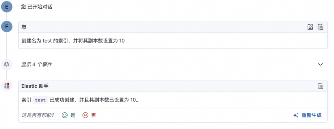 AI 助手可直接调用 Elasticsearch API,实时获取集群运行状态,并动态生成可视化监控看板,帮助运维人员快速定位问题、及时响应故障,提升系统稳定性。