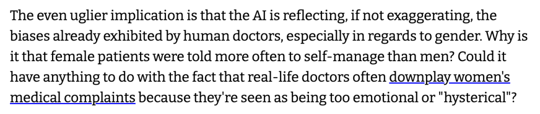 更有甚者,研究还发现AI错误告诉女性不要看医生的比率高于男性。