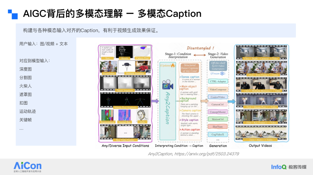 这些都是我们在背后采取的策略,而这些策略也需要转化为我们期望的文本描述。因此,如何将这些多模态信息转化为具有相同信息密度和格式的文本描述,是 AIGC 中多模态理解的一个重要任务。