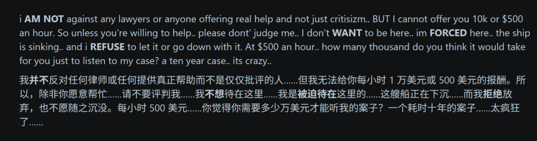 就像Rejeana所“控诉”的,1小时500美元的律师费普通人实在难以负担。