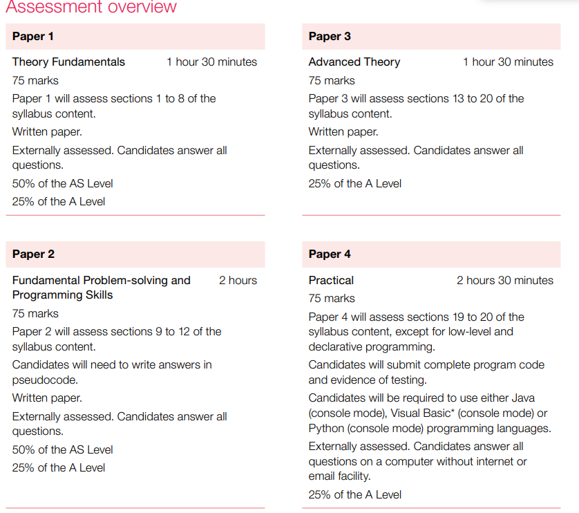 以CIE考试局计算机A-level为例: