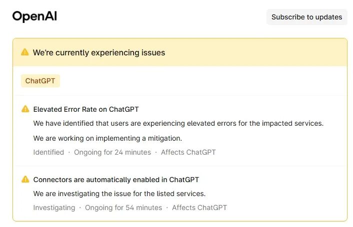 OpenAI:ChatGPT用户正经历错误率升高问题,团队正努力解决