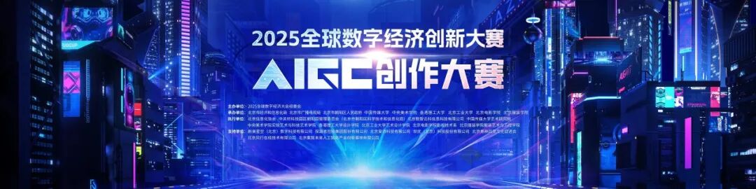 2025全球数字经济创新大赛AIGC创作大赛由全球数字经济大会组委会(北京市人民政府、国家互联网信息办公室、国家数据局、新华通讯社、联合国开发计划署)主办,北京市经济和信息化局、北京市广播电视局、北京市朝阳区人民政府、中国传媒大学、中央美术学院、香港理工大学、北京电影学院、北京工业大学、北京服装学院承办。