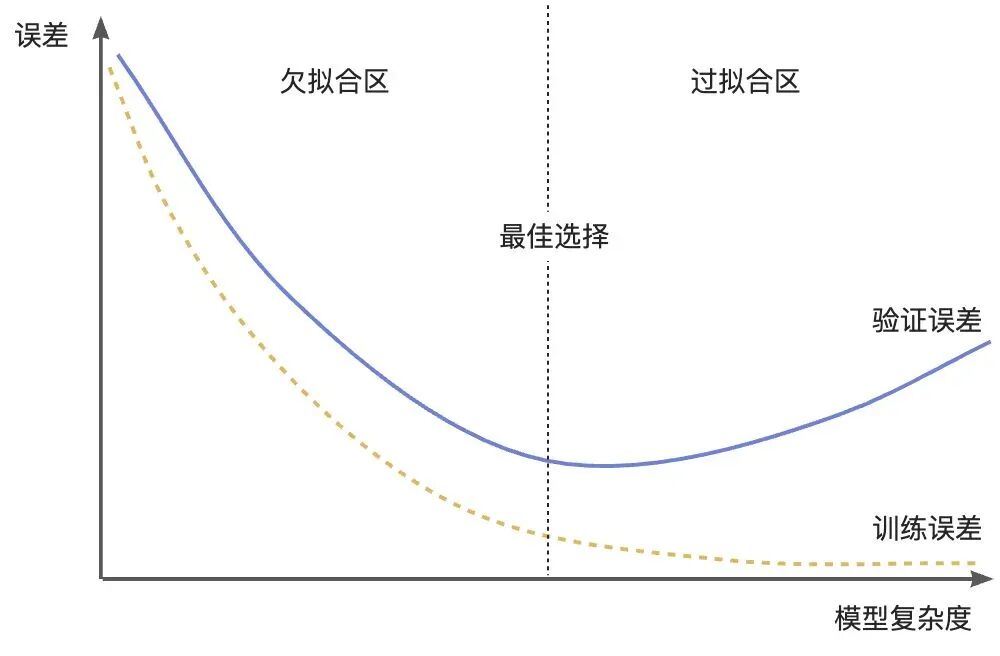 模型复杂度是一个用来衡量机器学习模型在结构、参数等方面复杂程度的指标,用来反映模型对数据的拟合与泛化之间的平衡关系。通常来讲复杂度低的模型容易欠拟合,复杂度高的模型容易过度拟合训练数据中的噪声和细节,泛化能力差。