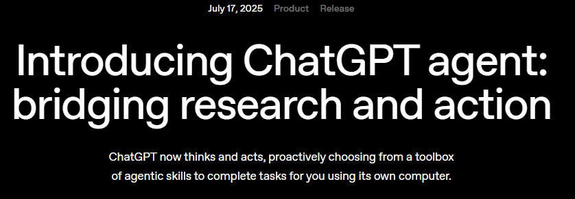 从今天起,ChatGPT Pro、Plus 和 Team 计划的订阅者将可以使用 ChatGPT Agent。用户可以在 ChatGPT