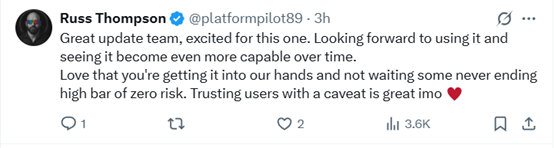 团队这次更新太棒了,对此我非常期待。盼着能用起来,也期待着它会随着时间推移变得更强大。