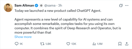 OpenAI首席执行官Sam Altman还非常罕见地发表了一篇长文来说明ChatGPT Agent: