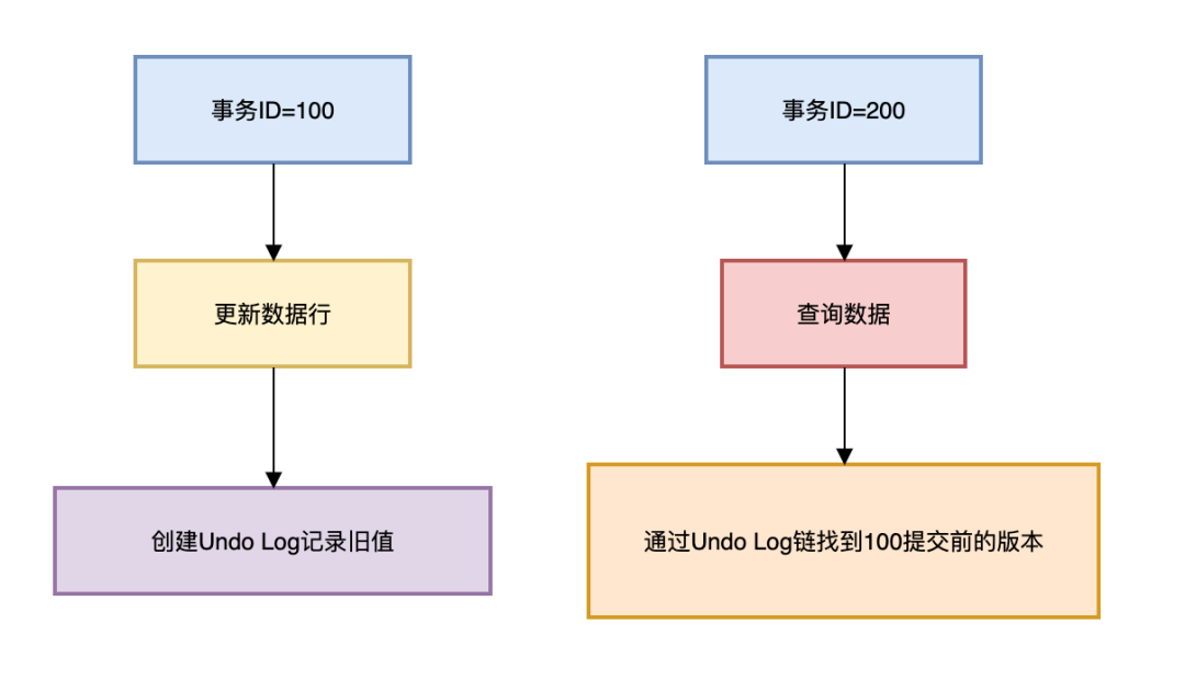 三、Undo Log:事务回滚的时光机 3.1 MVCC实现原理 多版本控制流程 :